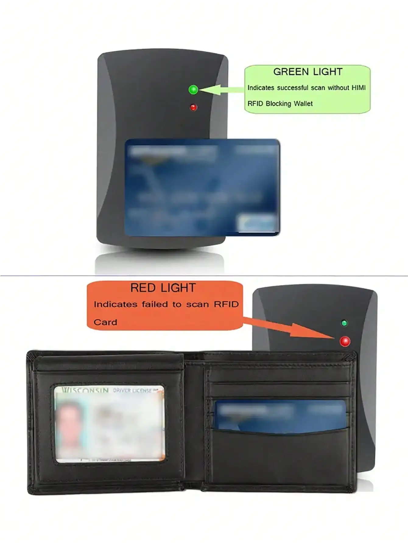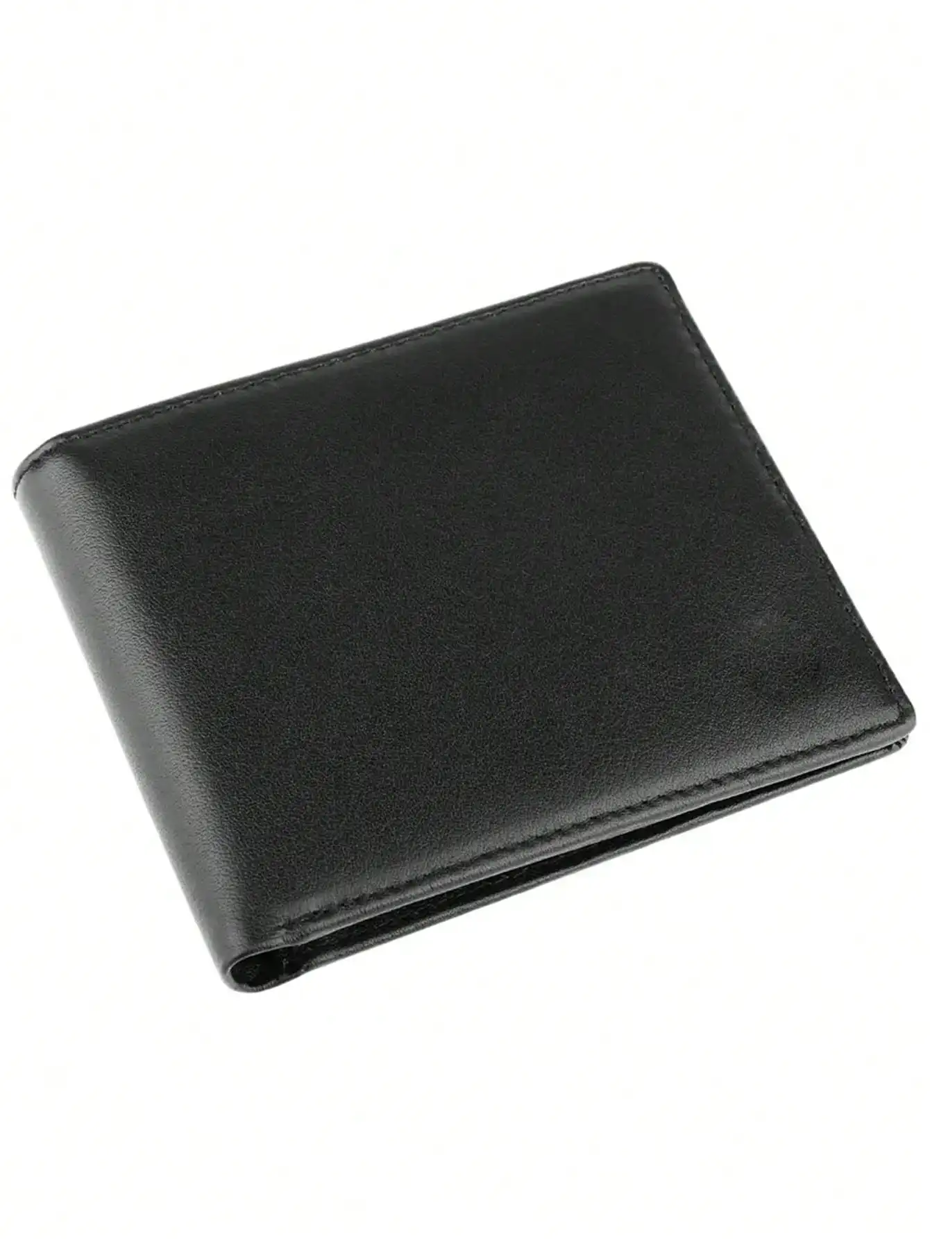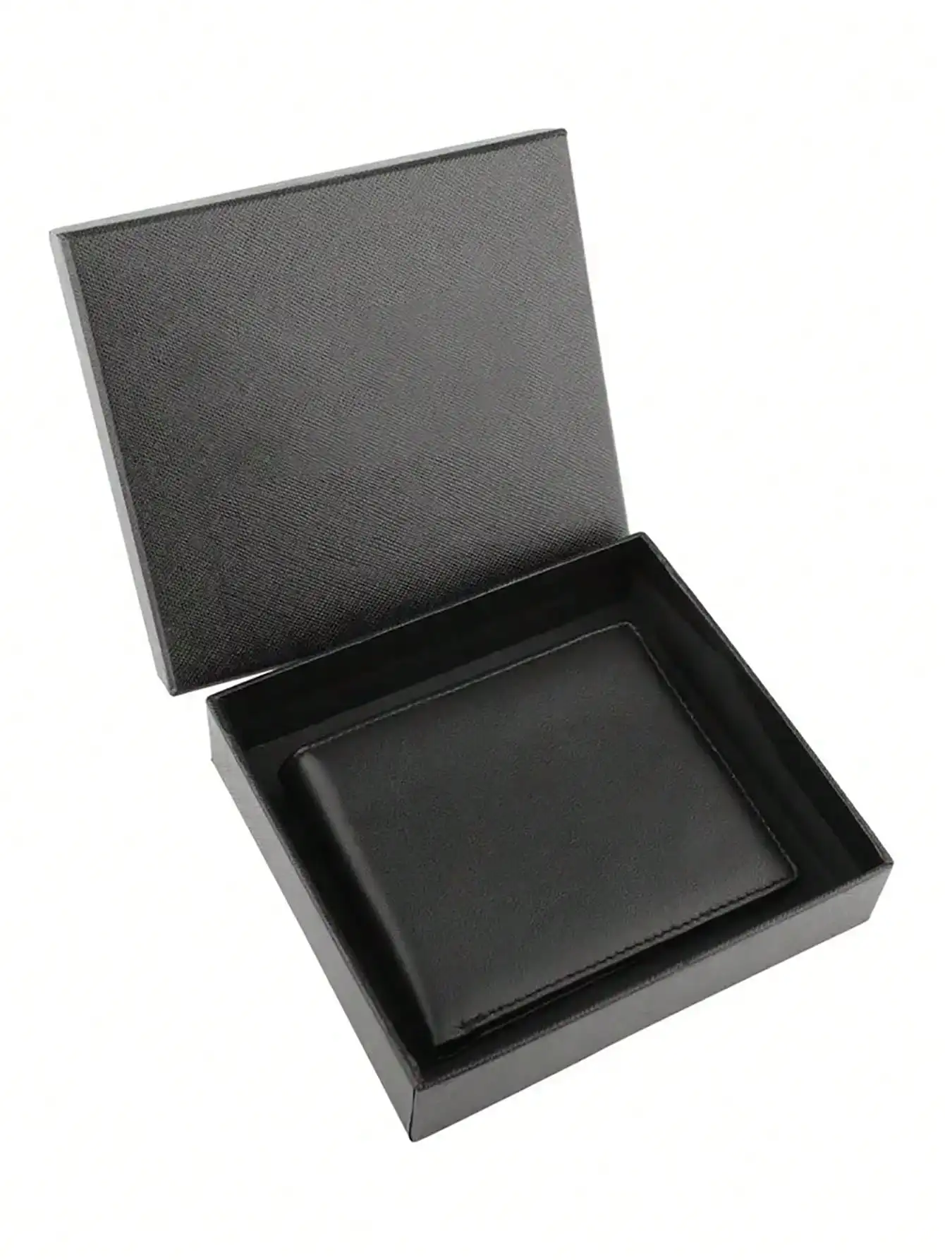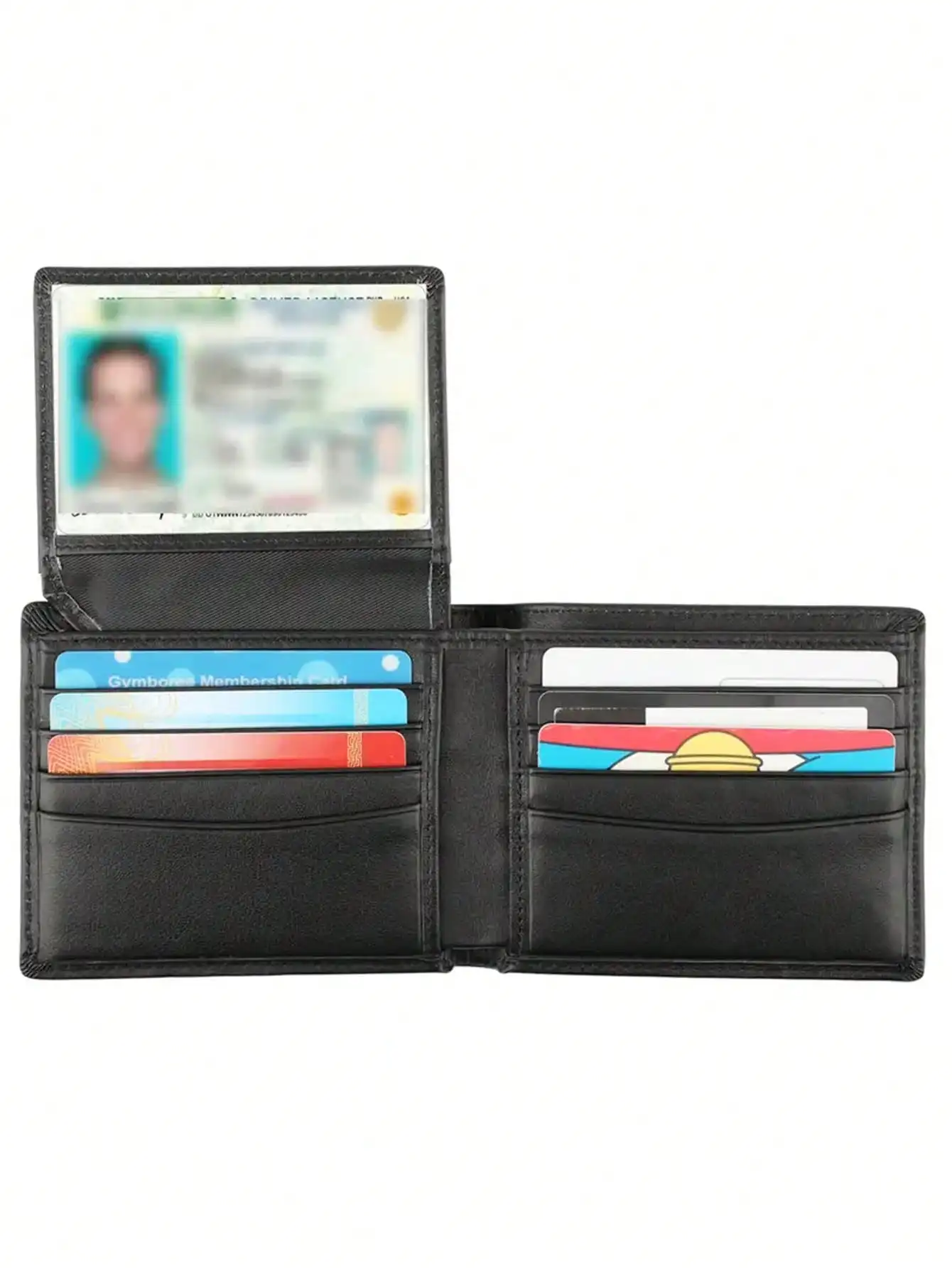 Stylish Cowhide Leather Bifold Wallet For Men - RFID Blocking & 2 ID Windows - Black