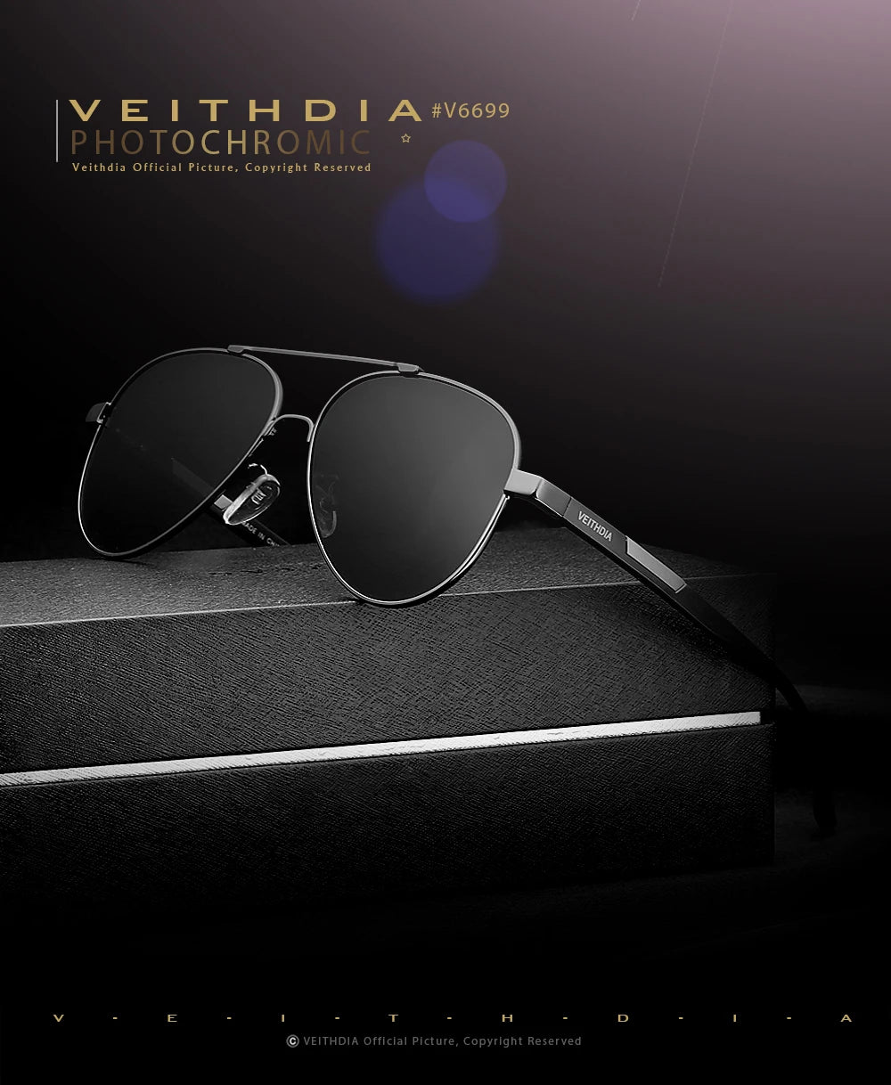 VEITHDIA Men's Sunglasses Aluminum Photochromic Women Polarized UV400 Lens Fashion Driving Outdoor Eyewear Male Sun Glasses 6699